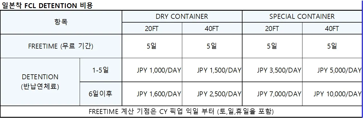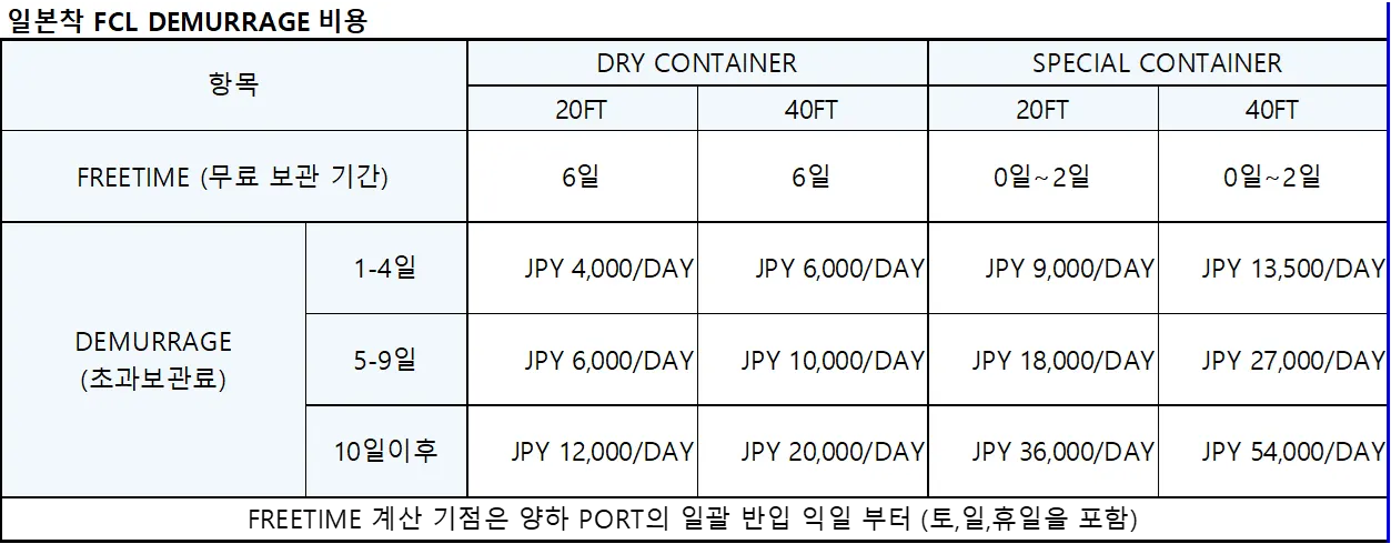Q. 일본착 FCL DEMURRAGE, DETENTION 발생 기준은 어떻게 되나요?