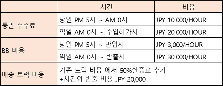 ※ 상기 비용은 HBL 당의 대략적인 비용으로서, 경우에 따라 추가 비용 등이 발생할 수 있으므로 상세 문의를 주시면 안내드리도록 하겠습니다.
