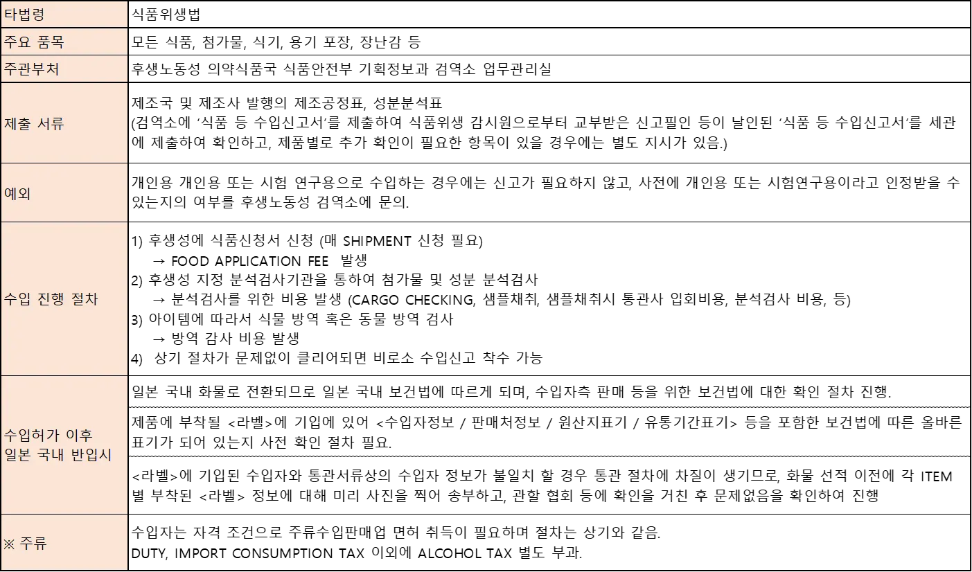 Q. 일본 수입 시, 타법령 적용 화물과 통관 절차는 어떻게 진행되나요?