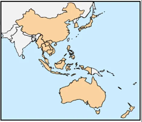 한국, 일본, 중국, 호주 및 뉴질랜드, 브루나이, 캄보디아, 인도네시아, 라오스, 말레이시아, 미얀마, 필리핀, 싱가폴, 태국, 베트남 ASEAN 15개국