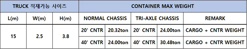 Q. 일본 국내 도로 운송 가능한 화물트럭 적재 기준과 컨테이너 운송 적재 기준은 어떻게 되나요 ?